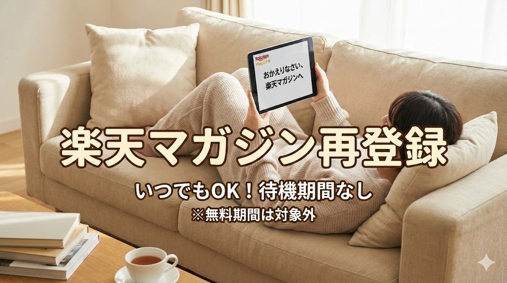 「楽天マガジンって解約後でも再登録できる?」「無料お試しは使えるの?」と気になっていませんか。 結論からお伝えすると、楽天マガジンは解約後いつでも再登録できます。ただ、31日間の無料お試し期間は初回限定のため、再登録では適用されません。 こ... -