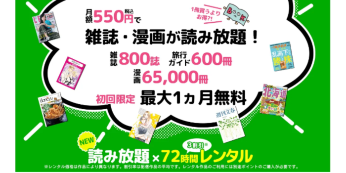 | 読み放題対象 | 200万冊以上(雑誌・書籍・漫画含む) |
