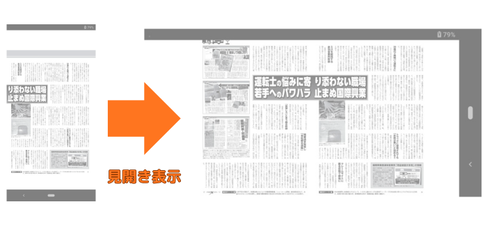 スマホを横画面で見ることによって、見開きで雑誌を見ることが可能