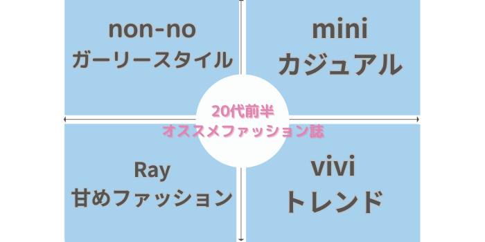• 20代前半向け: non-no、Ray、ViVi、miniが人気